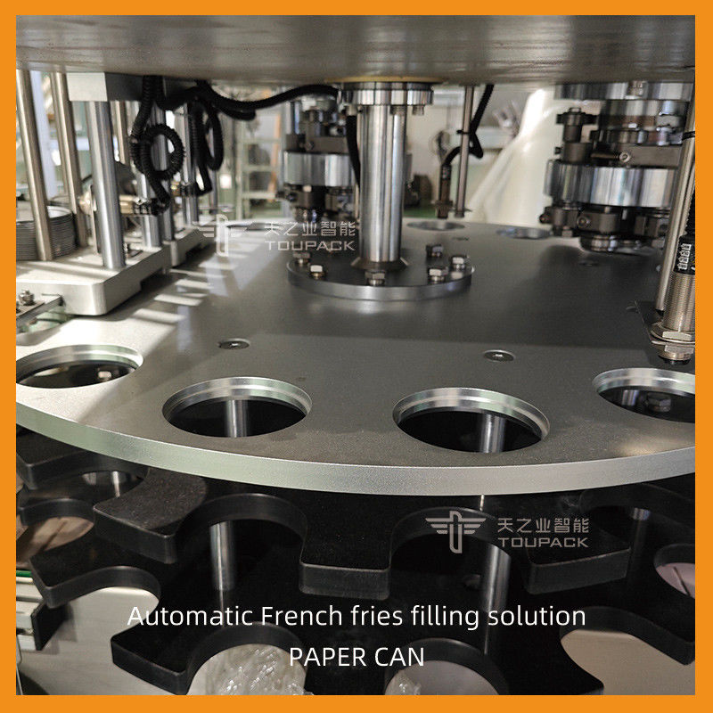 Эта система состоит из головы лепешки заполняя, цепного транспортера и располагая прибора. Она может выполнить автоматический располагать, заполнять и измерять бутылок. Она принимает экран мотор сервопривода (или шагать) и касание PLC, легкий для того чтобы работать и высокая стабильность. Она может сформировать весь набор заполняя линии с автоматом для резки бутылки, машиной крышки поворачивая и машиной для прикрепления этикеток. Соответствующий для всех видов сопенной еды, как картофельные чипсы, обломоки креветки, попкорн, обломоки мозоли и другая производственная линия закусок количественная консервируя.