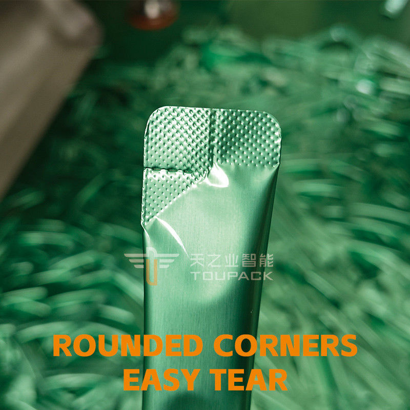 Эта машина использует передовую систему управления фотоэлектрическими датчиками, точно разрезая между двумя пакетами, она может автоматически выполнять изготовление пакетов, дозирование, наполнение, запечатывание, резку, резку для легкого разрыва, печать даты, соединительную резку и т. д.