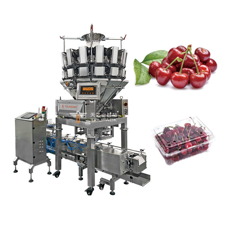 Полностью автоматическая упаковочная машина для фасовки и взвешивания черники в контейнерах с диспенсером коробок